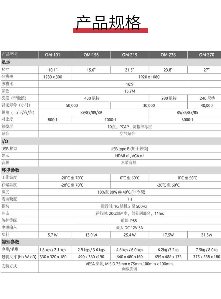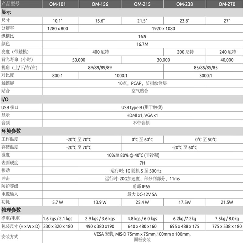 凌华ADLINK工业显示器OM-101含适配器和配件