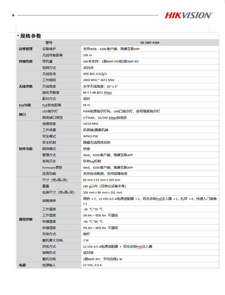 海康威视HIKVISION无线网桥DS-3WF-E100