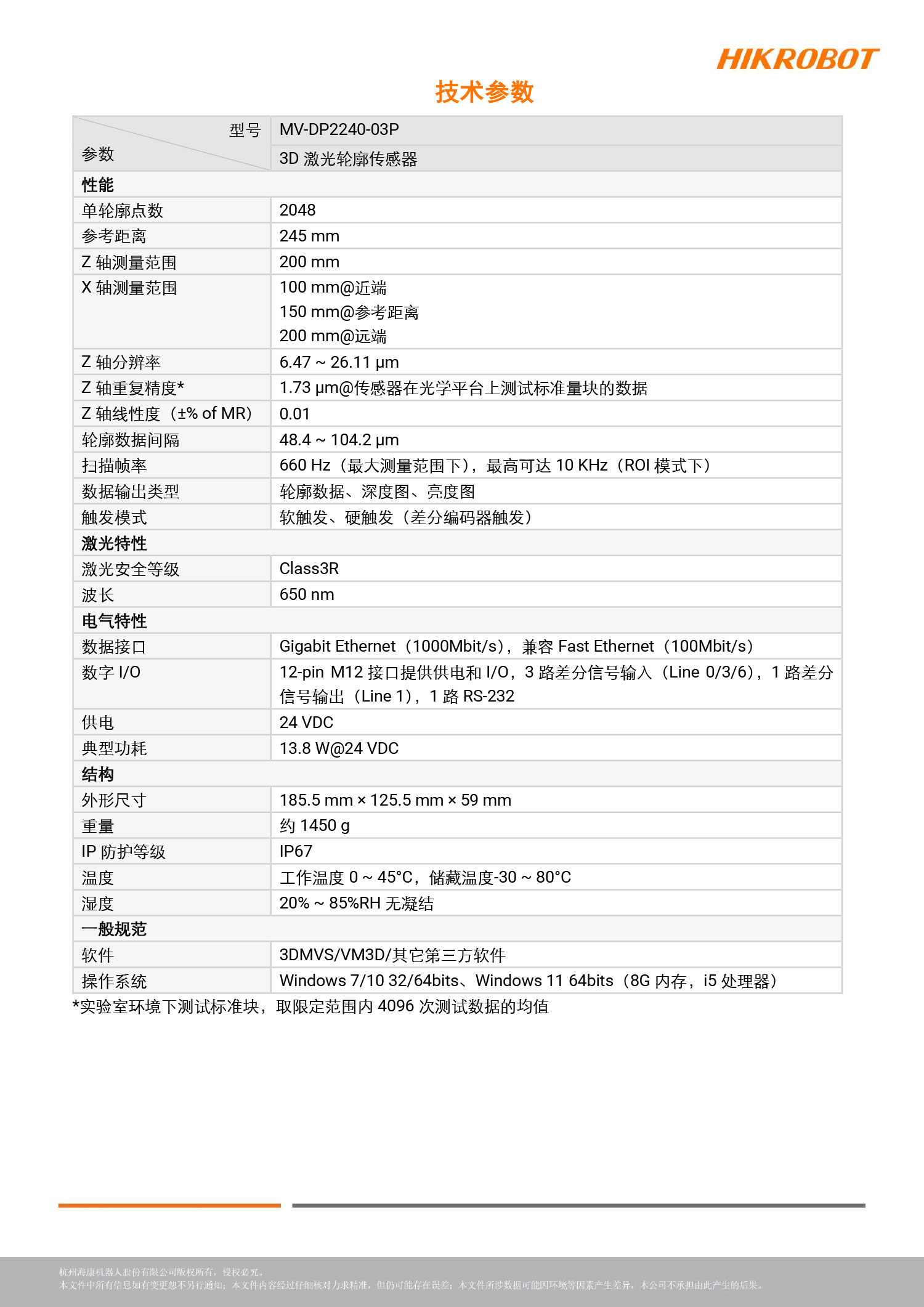 海康机器人HIKROBOT工业立体相机MV-DP2240-03P