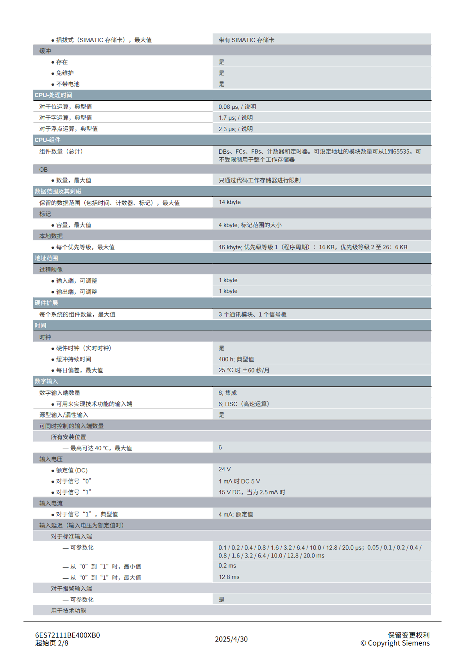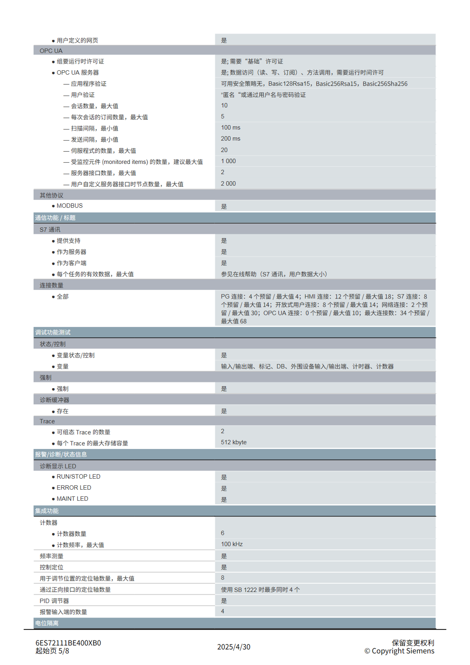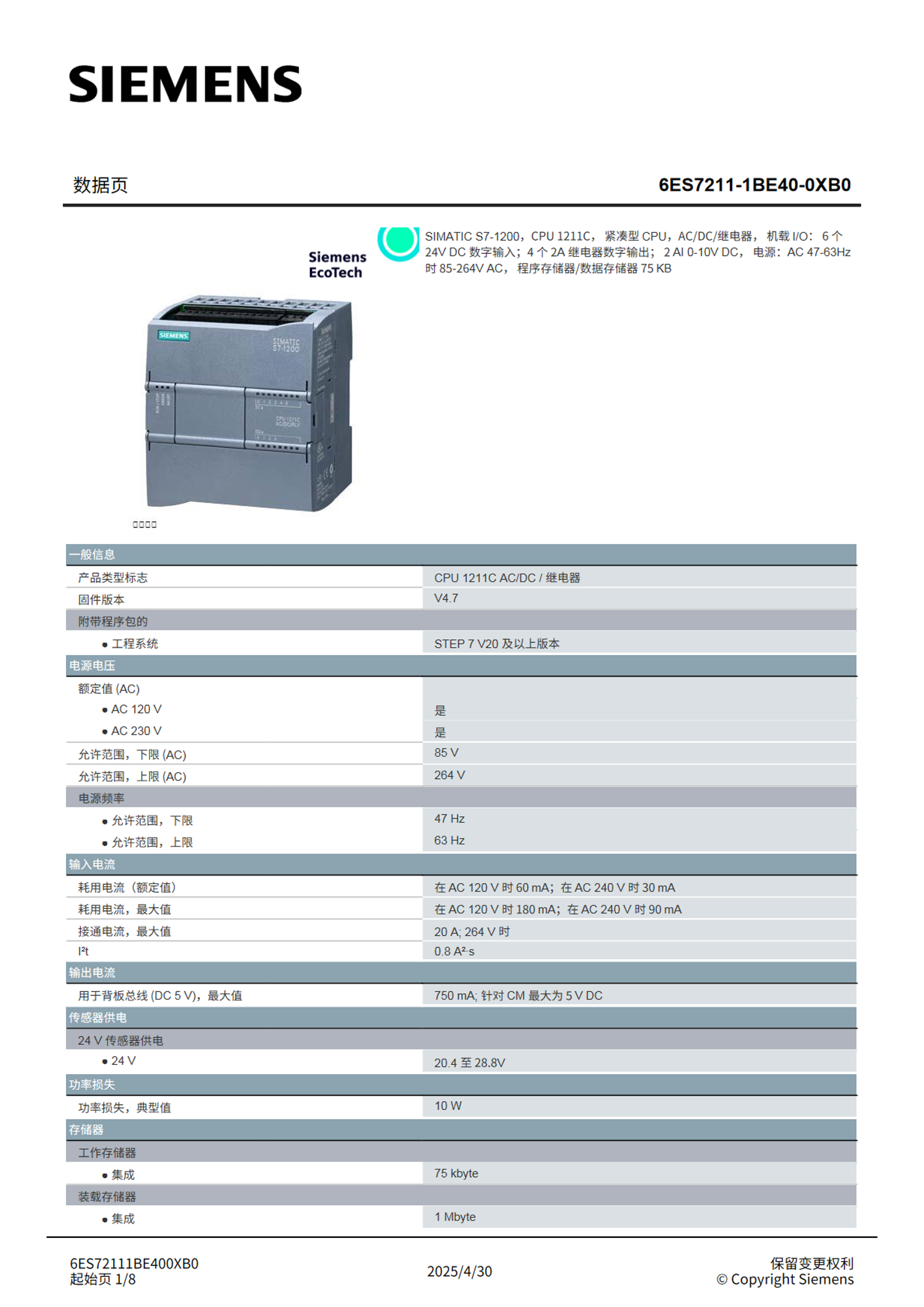 西门子SIEMENSS7-1200PLC本体标准型6ES7211-1BE40-0XB0