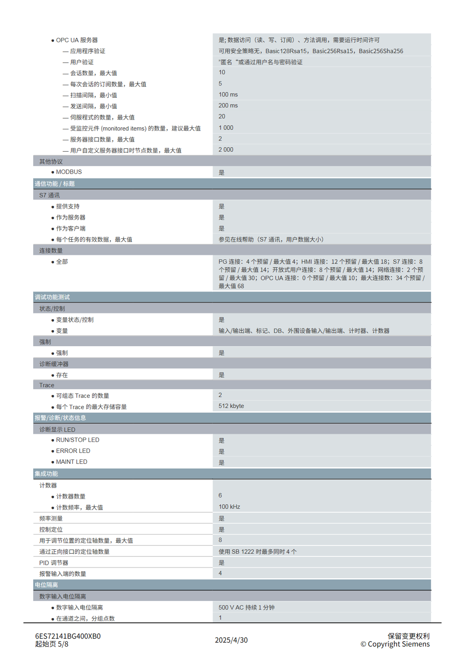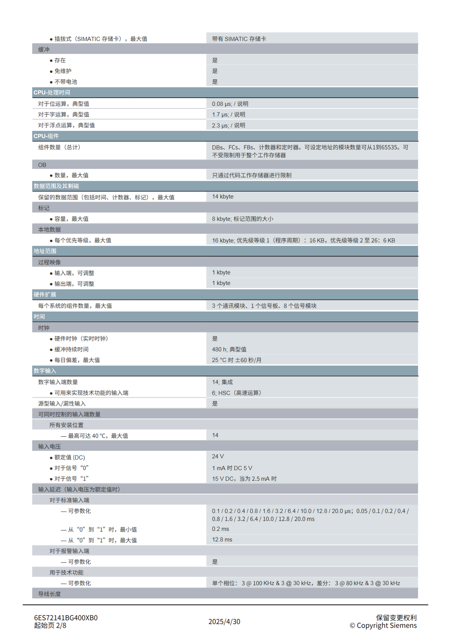 西门子SIEMENSS7-1200PLC本体标准型6ES7214-1BG40-0XB0